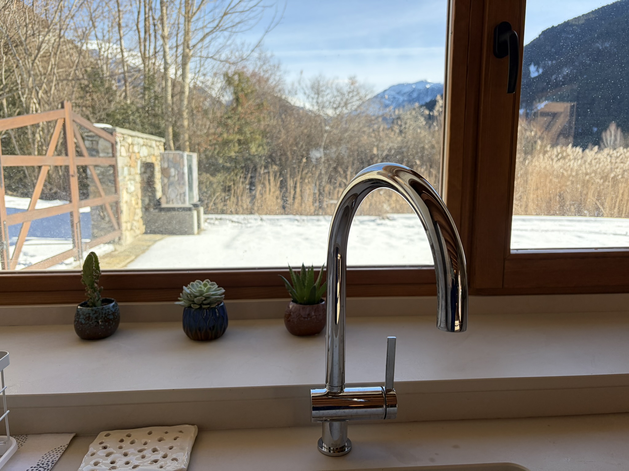 La casa está en su propio terreno y tiene vistas abiertas a las montañas desde cualquier punto, con mucha privacidad y contacto directo con la naturaleza.